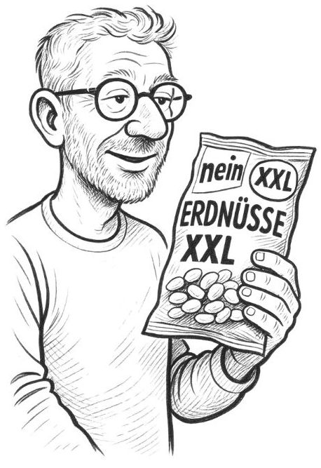 Ich halte die Tüte hoch. „Nicht snacken, das klingt zu platt. Nenn es symbolisieren. Jede Erdnuss steht für eine Erkenntnis.“