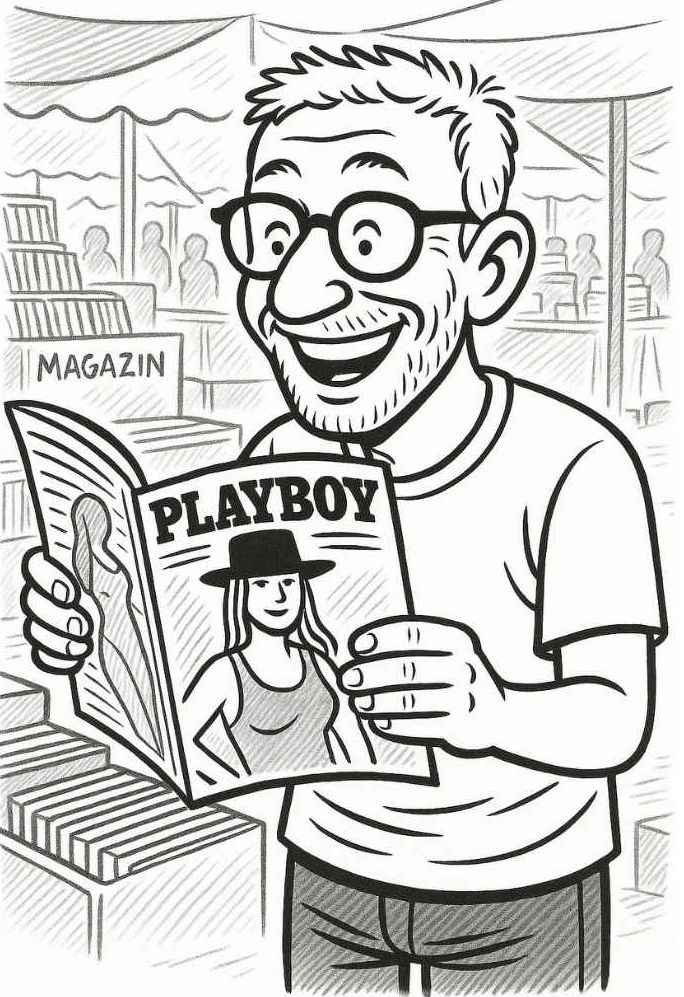Die Leute um uns prusten, Silke glüht vor Scham. Ich klappe das Heft auf, halte es ihr direkt vor die Nase und sage mit theatralischer Geste: „Guck hier, Silke. Das waren noch Brüste! Natürlich! Handgemacht! Ohne diesen ganzen Silikon-Quatsch. Heute läuft jede dritte rum wie ein schlecht aufgeschäumter Cappuccino.“ Ein älterer Mann am Nachbarstand verschluckt sich fast am Kaffee, zwei Damen hinter uns lachen laut auf.