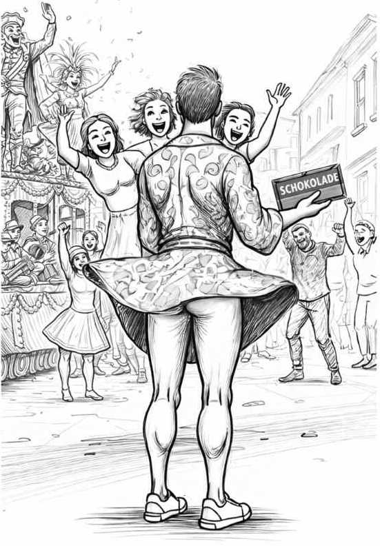 „So“, sage ich ruhig, „damit wären wir beim Erwachsenenkarneval angekommen.“